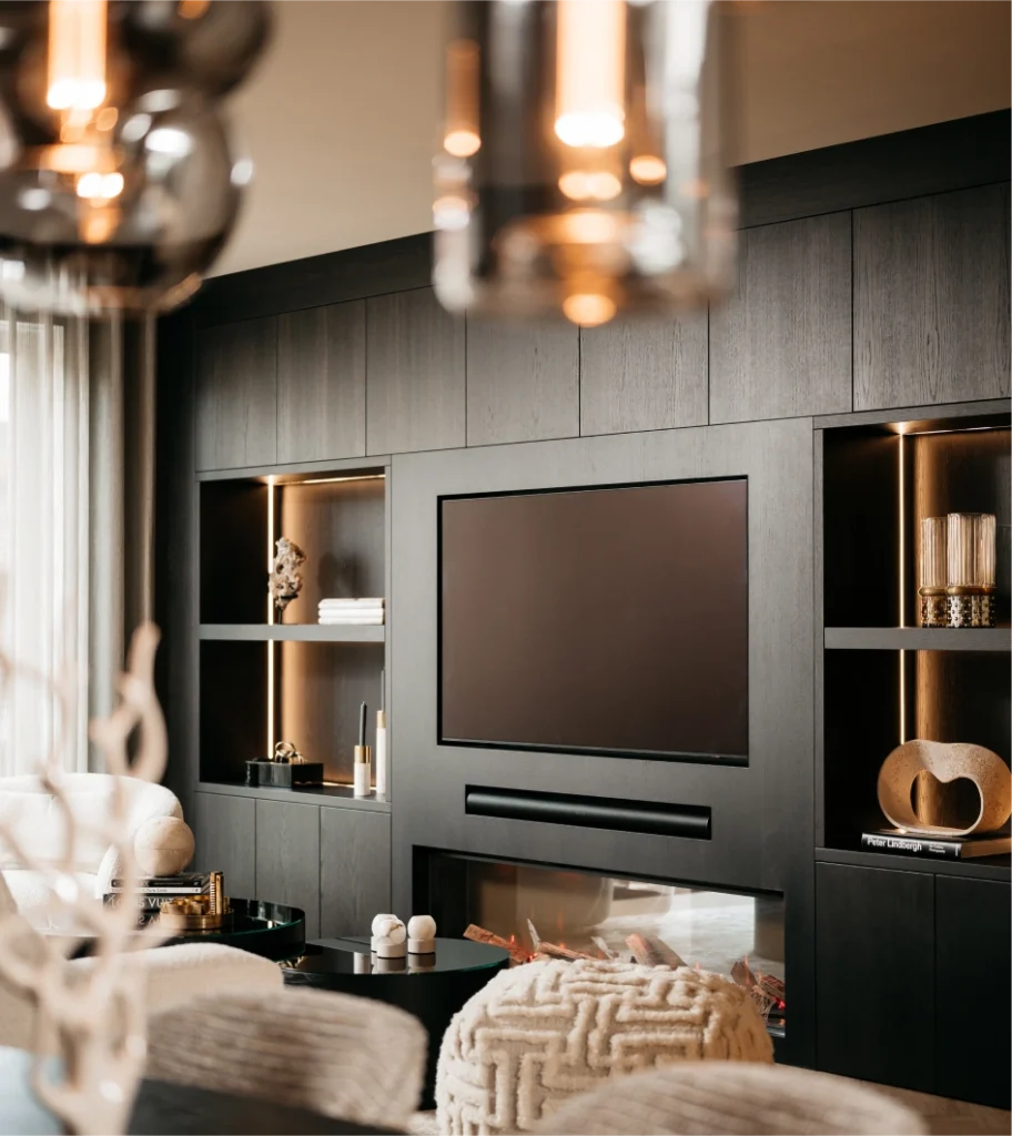 Wij maken uw cinewall volledig op maat, van begin tot eind. Samen met u ontwerpen wij een exclusief meubel dat perfect past bij uw interieur en wensen. De keuze is groot, en wij begeleiden u graag bij het maken van de juiste beslissingen.