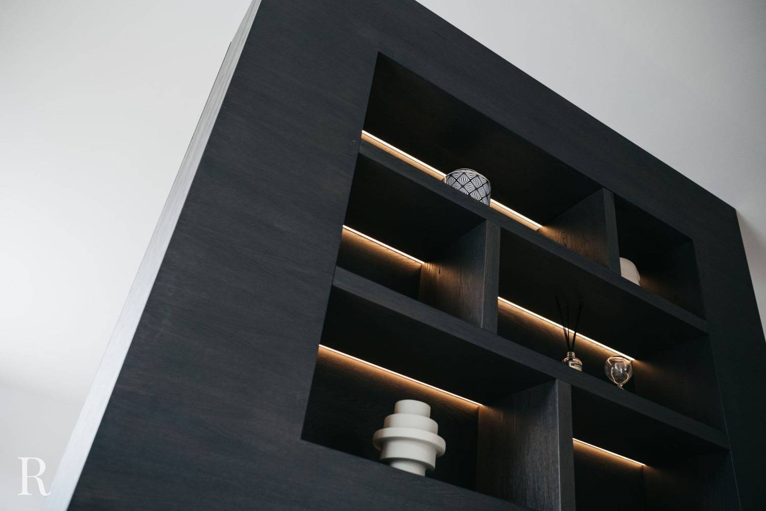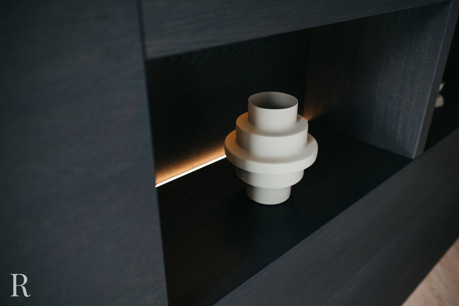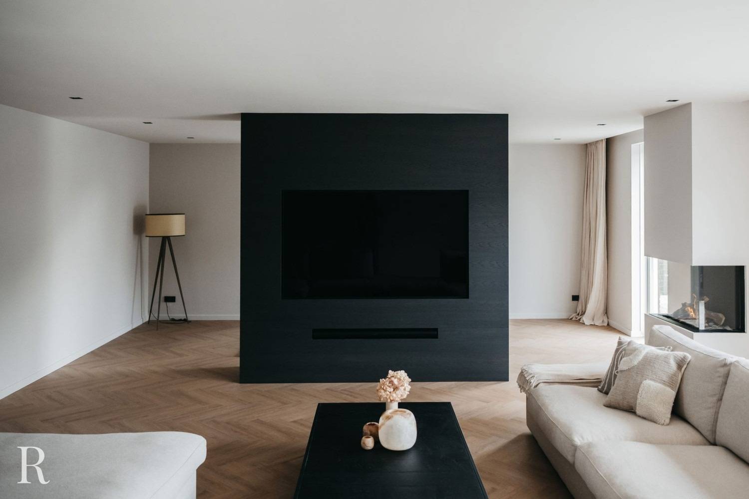 Zo maakt u smaakvol gebruik van de ‘kleur’ zwart. Dit televisiemeubel op maat is de hoofdrolspeler in de woonkamer! En het steelt niet alleen de show vanwege de plaatsing in het interieur, maar ook vanwege het functionele ontwerp. Aan de voorkant van de cinewall is een flatscreen en soundbar geplaatst, aan de achterkant bieden de nissen ruimte om mooie woonaccessoires en persoonlijke spullen te tonen.