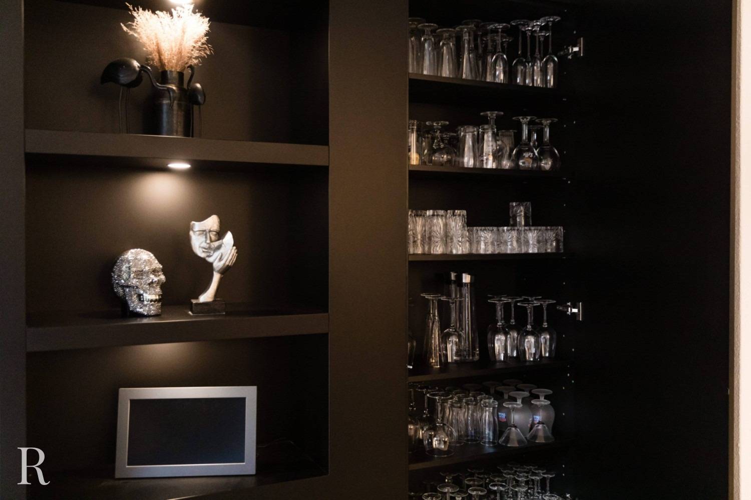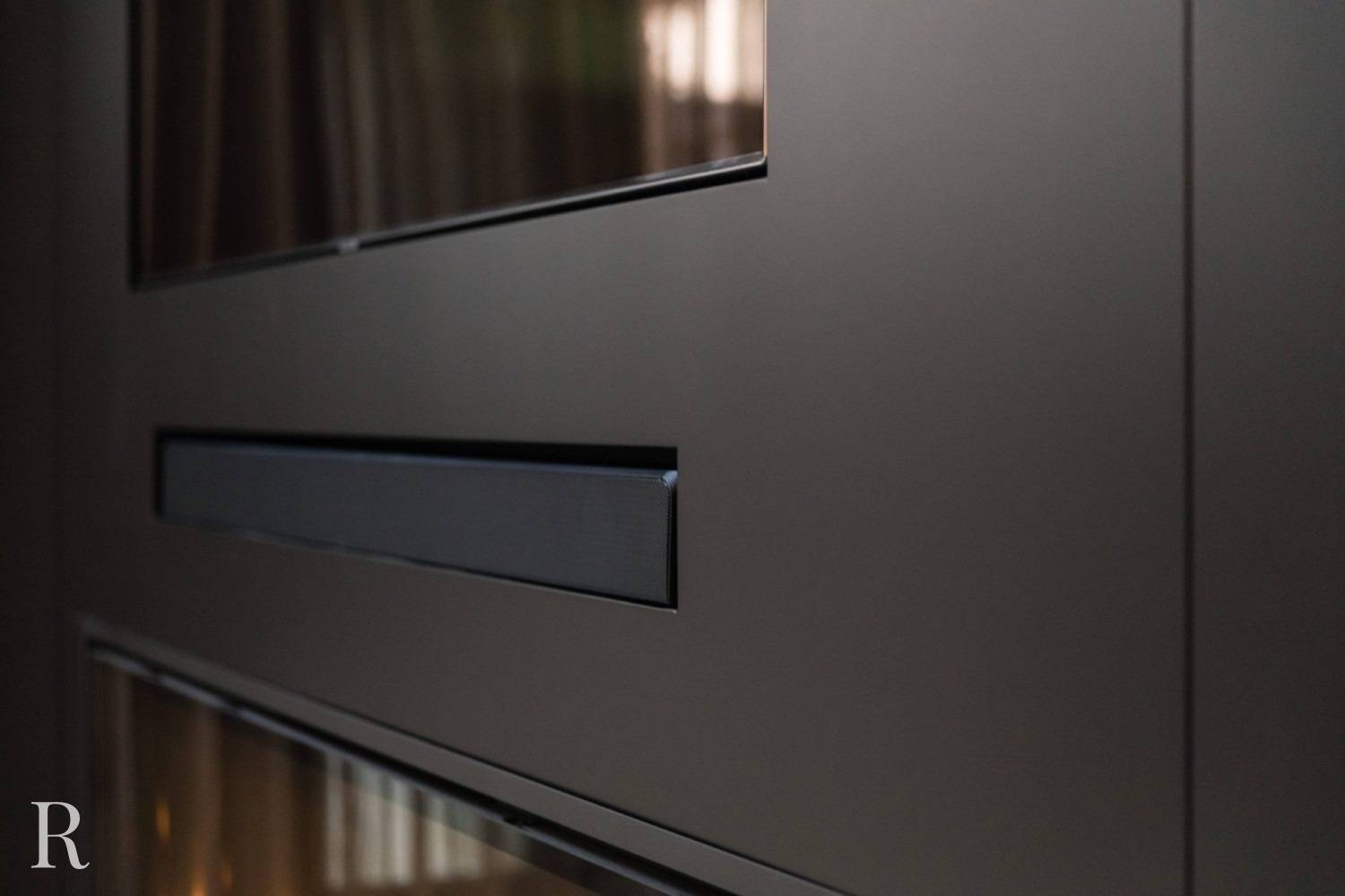 Voor deze klant in Nijmegen bouwden we een strakke plafondhoge tv-wand. De zwarte cinewall vormt een perfect plaatje in het interieur.